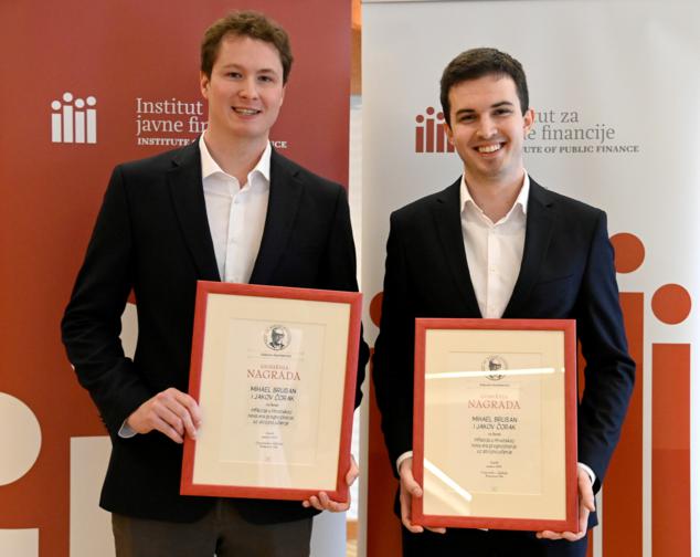 U kategoriji studentskih radova, nagradu u iznosu od 2.000 eura i diplome dobili su Mihael Brusan i Jakov Čorak, studenti Ekonomskog fakulteta Sveučilišta u Zagrebu, za rad „Inflacija u Hrvatskoj: nova era prognoziranja uz strojno učenje“.